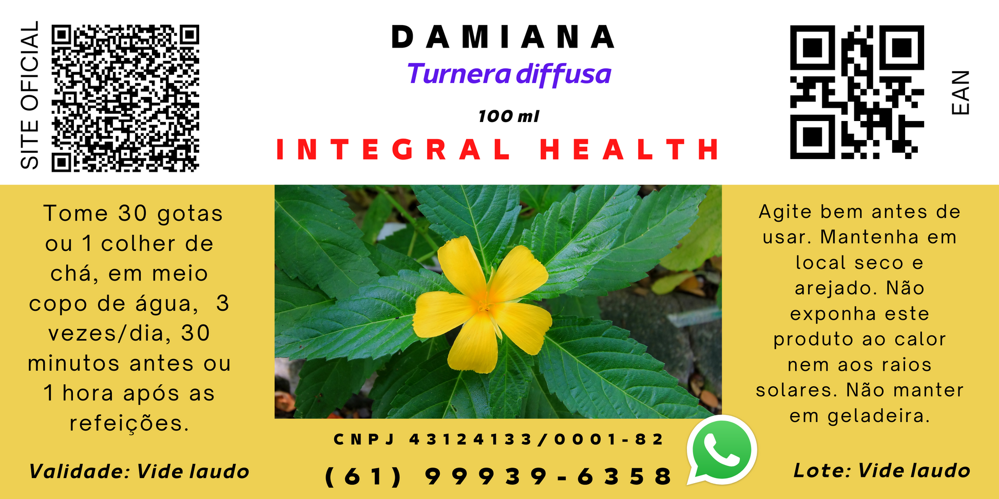 INTEGRAL HEALTH assume o compromisso de manter 100% a pureza de seus produtos, esforçando-se para garantir a utilização das imagens e informações, alterações na fabricação de embalagens e / ou ingredientes, as quais podem, eventualmente, aparecerem pendentes de atualização no marketplace ou em nosso site. Embora os itens possam ser ocasionalmente enviados em embalagens alternativas, o frescor sempre será garantido. Deve estar claro, para qualquer pessoa de inteligência mediana, ao menos, que os anúncios de nossos produtos não se propõem a fornecer diagnósticos, tratamentos ou aconselhamentos médicos. As descrições fornecidas na plataforma do Mercado Livre servem apenas a propósitos informativos. Por favor, sempre consulte um profissional de saúde, apto a aplicações da medicina integrativa, nutrólogo, naturopata, fitoterapeuta, nutricionistas que adicionaram em seus currículos conhecimentos de dieta ortomolecular e plantas medicinais, caso precise de opções de tratamento ou diagnóstico médico ou de saúde. As informações sobre os produtos não substituem aconselhamentos desses profissionais. As afirmações sobre produtos específicos, feitas particularmente nesta plataforma não devem ser entendidas como diagnóstico, tratamento, cura ou prevenção de doenças. Se estiver usando medicamentos químicos, recomendamos que leia as bulas, rótulos, avisos e instruções de todos os produtos antes de usá-los e que não confie apenas nas informações contidas nas bulas de medicamentos produzidos pela indústria farmacêutica em geral. Isso é de fundamental importância para que se evite os nocivos efeitos colaterais, cujas consequências poderão ser fatais para a saúde do paciente. A simples leitura da bula de medicamentos receitados por um médico poderá evitar o surgimento de novas doenças e suas consequências fatais.