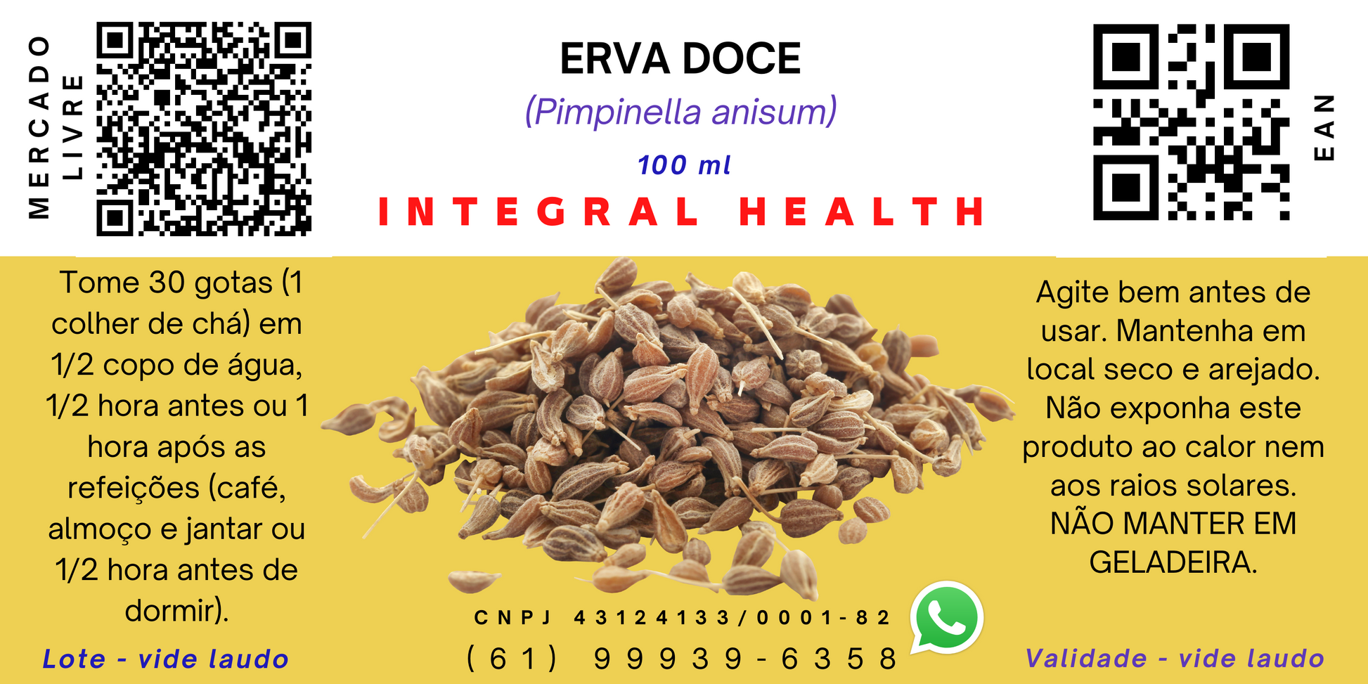 Erva-Doce, 200 ml - Antioxidante, Micoses, Vírus do Sarampo, Gripe, HIV, Todos os tipos de cólicas, Estômago, Fígado, Bronquite, Asma, Dores pós-parto, Lactação, Menopausa, Gastrite, Diabetes, Câncer da Próstata. Problemas digestivos, azia, gases, cólicas, prisão de ventre, dor de cabeça, enxaqueca, antibiótico, anti-inflamatório, antiviral, antibacteriano, antifúngico, anticoagulante etc.