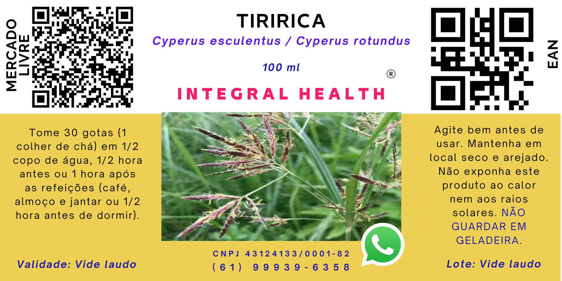Tiririca, 200 ml (2 frascos de 100 ml em vidro âmbar) - Cyperus esculentus / Cyperus rotundus - AVC, câncer, antialérgico, febre, colesterol etc.